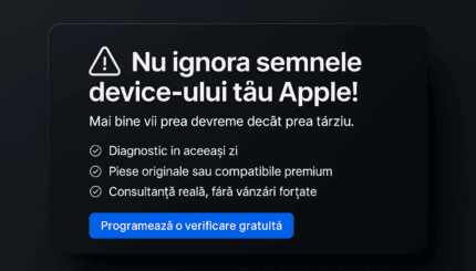 De multe ori, micile probleme ale unui iPhone, MacBook sau iPad sunt lăsate „pe mai târziu”. Din lipsă de timp, din speranța că „își revine singur” sau pentru că, recunoaștem, nu vrem să auzim cuvântul „reparație”.