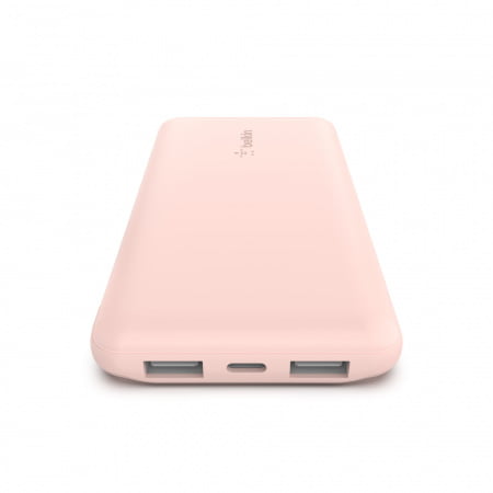 Belkin BOOST CHARGE (10000 mAH) Power Bank with USB-C 15W – Dual USB-A – 15cm USB-A to C Cable – Pink, BPB011btRG